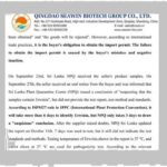 ජාතික ශාක නිරෝධන සේවාවේ අතිරේක අධ්යක්ෂවරයාට ලිපියක් යොමු කරන චීනයේ සිට මෙරටට කාබනික පොහොර ගෙන්වා ඇති චීන සමාගම විසින් ඩොලර් මිලියන අටක් ගෙවන ලෙස දන්වා තිබේ. එම චීන සමාගම සිය නීත්ඥ සමාගම හරහා ජාතික ශාක නිරෝධන සේවාවේ අතිරේක අධ්යක්ෂවරයාට සති තුනක් ඇතුළත මෙම මුදල නොගෙවන්නේ නම් නඩු ...