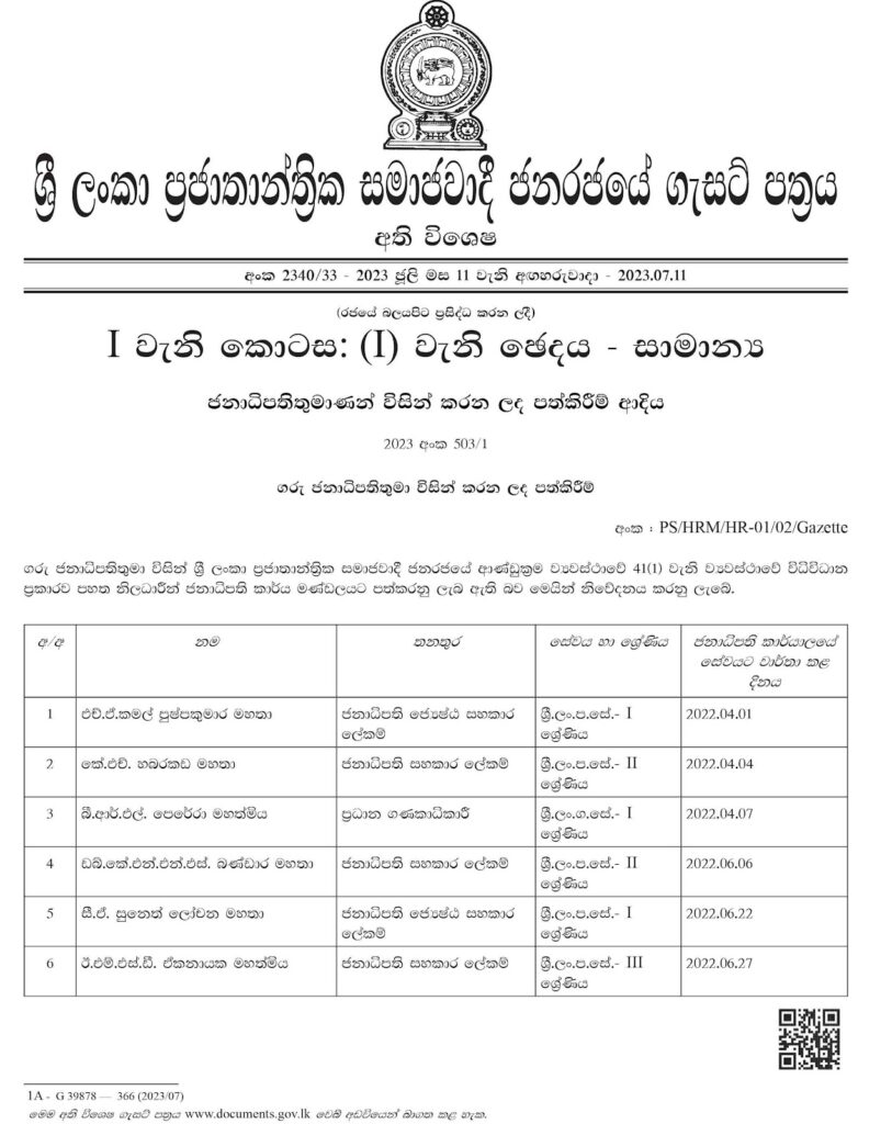 ඊට අදාළ ගැසට් නිවේදනය පහතින්,