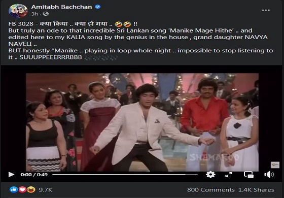 ඇය කරණු ලැබූ “කවර් සෝන්ග්” එකට ඉන්දීය සිනමාවේ සුපිරි තරුවක් වන අමිතා භච්චන් මහතා ” “මට දැන් මේක නතර කරගන්න බෑ” යනුවෙන් සිය සමාජ ජාලා ගිනුමේ තැබූ සටහන හේතුවෙන් එම වීඩියෝව ඉහල ජනප්රියත්වයක් හිමි කර ගෙන තිබූ බව වාර්තා වේ. එම වීඩියෝව මේ වන විට මිලියන 35කට වඩා නරඹා ඇති බවද වාර්තා වේ. මේ වන විට එම ගීතය හින්දි භාෂාවෙන්ද ගායනා කර තිබේ.