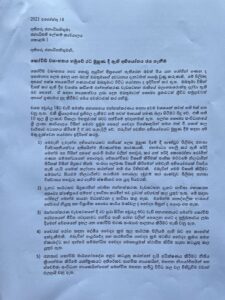 ජනාධිපතිවරයා ට භාර දී ඇති සම්පුර්ණ ලිපිය පහතින්
