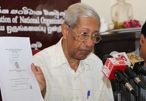 2018 මැයි 18 දින ගැසට් කරන ලද ‘‘සාපරාධී කාරණාවලදී අන්යෝන්ය සහයෝගිතාව දැක්වීමේ සංශෝධන පනත් කෙටුම්පත“ අද වන විට පාර්ලිමේන්තු න්යායපත්රයට ඇතුලත් කර ඇති බවත් එම පනත අවලංගු කරන ලෙසත් ජනාධිපති මෛත්රීපාල සිරිසේන මහතාගෙන් ඉල්ලා සිටින බව ජාතික සංවිධාන එකමුතුව පවසයි.