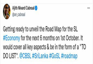 රටේ සියලු ප්රධාන අංශ ආවරණය කරමින් එම “සය මාසික ආර්ථික සැලැස්ම” නිර්මාණය කර ඇති බව අජිත් නිවාඩ් කබ්රාල් මහතා නිකුත් කර ඇති ට්ව්ටර් පණිවුඩයේ දැක්වේ.