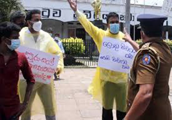 මත්පැන් අලෙවිසැල් විවෘත කිරීමට අවසර ලබාදීමට හැකියාව පවතින්නේ නම් වෙළඳසැල් විවෘත කිරීමටද ඉඩ ලබාදෙන ලෙස පවසමින් එක්සත් ජාතික ස්වයං රැකියා සංගමය කොටුව දුම්රියපොළ ඉදිරිපිට විරෝධතාවක නිරතවුණා.