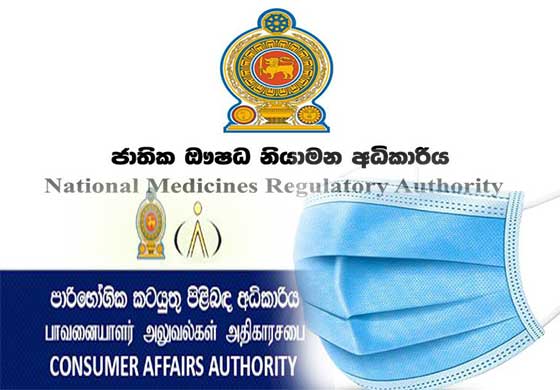 තවද ජාතික ඖෂධ නියාමන අධිකාරියේ අනුමැතිය ඇති බව ව්යාජ ලෙස සකස්කර වෙළඳපොළට මුහුණු ආවරණ නිකුත්වී ඇති බවට ජාතික ඖෂධ නියාමන අධිකාරියට පැමිණිලි ලැබී ඇති අතර ඒ සම්බන්ධයෙන්ද ඉදිරියේදී නීතිමය ක්රියාමාර්ග ගැනීමට නියමිත බව එම ආරංචි මාර්ග වැඩිදුරටත් සදහන් කළේය.