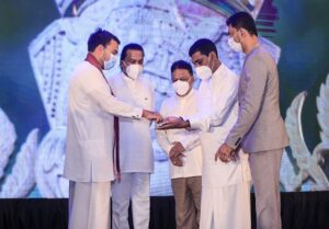 “සම්ප්රදායික, නිර්මාණාත්මක කර්මාන්තයක යෙදී සිටින අපේ ප්රජාව බලගැන්වීම සඳහා අද තබනු ලැබූ ඉදිරි පියවර සම්බන්ධයෙන් ග්රාමීය කර්මාන්ත ප්රවර්ධන රාජ්ය අමාත්යාංශය යටතේ ක්රියාත්මක ජාතික ශිල්ප සභාවට අපේ සුබාශිංසන ප්රථම කොටම පුද කරනවා. අපේ ඉතිහාස කතාව තුළ අපටම ආවේණික වූ කලාවන් සහ කර්මාන්තයන් රැසක් අපට හමුවෙනවා. මම ළඟදි දුටුවා වීඩියෝ පටයක්. එහි දැක්වෙනවා, කැනඩාවේ හෝ යුරෝපා රටක විදේශිකයෙක්, තවත් විදේශිකයකුට ලංකාවෙන් රැගෙන ගිය පැරණි කඩුවක තිබෙන කැටයම් පිළිබඳ වර්ණනා කරන ආකාරය. ‘ඒ කඩුවෙන් මැරුම් කෑවත් කමක් නැහැ’ කියා අයෙකුට හිතෙන අන්දමේ මවිතය දනවන කැටයම් එහි තිබුණා. තමන්ගේ සුරත, දෑත යොදාගනිමින් අපේ පැරැන්නන් ඉතා ඉවසීමෙන්, සංයමයකින් භාවනාවක යෙදෙන ආකාරයට තමයි මේ කලා කෘති අපේ ප්රජාවට දායාද කළේ.