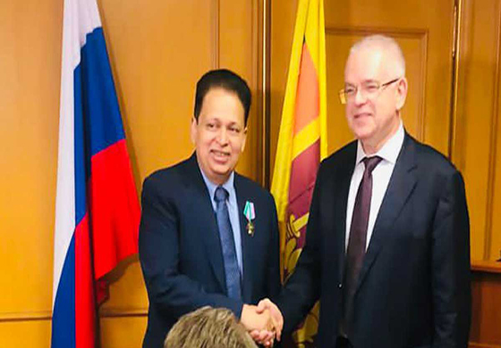 ජාත්යන්තර සහයෝගීතාව සහ සම්බන්ධීකරණය වෙනුවෙන් රුසියානු සමූහාණ්ඩුවේ විදේශ කටයුතු අමාත්යාංශයෙන් පිදෙන “ජාත්යන්තර සහයෝගිතා සම්මානය” අග්රාමාත්ය උපදේශක සහ රුසියාවේ හිටපු ශ්රී ලංකා තානාපති වෛද්ය සමන් වීරසිංහ මහතාට මොස්කව් නුවර දී පසුගිය (25) දා ප්රදානය කර ඇත.