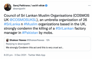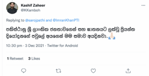 සිංහල භාෂාවෙන් මේ ට්විටර් පණිවුඩය නිකුත් කිරීම ඔහු කෙතරම් සංවේදී වී තිබෙන්නේ ද යන්න පිළිබඳ කදිම ඉඟියක් සපයන්නකි.