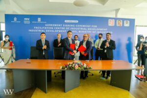 මෙහිදී මෙම පහසුකම් සැපයීමේ මධ්යස්ථානය වත්වාගෙන යාම පිළිබඳව කර්මාන්ත අමාත්යාංශය යටතේ පවතින ලංකා කාර්මික සංවර්ධන මණ්ඩලය සහ හම්බන්තොට ජාත්යන්තර වරාය ආයතන ගිවිසුමකට අස්සන් තැබීය.