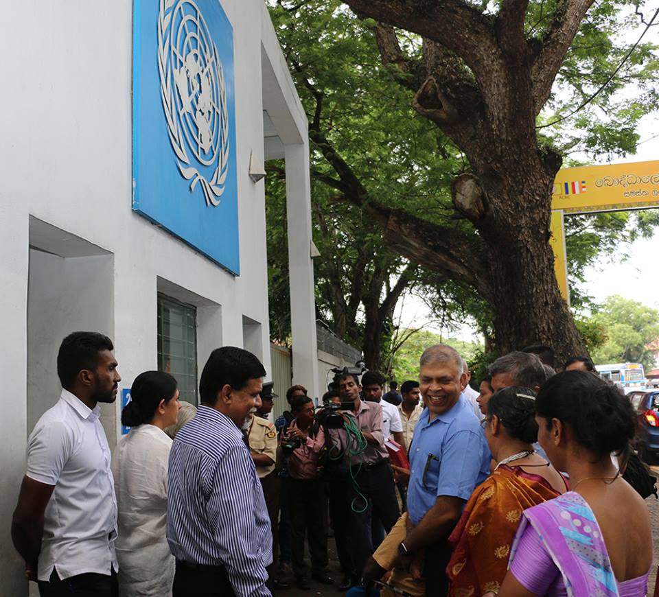 නියෝජිත පිරිසට එක්සත් ජාතීන්ගේ කාර්යාලය තුළට පිවිසීමට එහි බලධාරීන් අවස්ථාව නොදුන් අතර අද්මිරාල් සරත්වීරසේකර මහතාගේ මැදිහත්වීම මත ශ්රී ලංකාවේ ජ්යෙෂ්ඨ මානවහිමිකම් උපදේශක ජුආන් ෆර්ඩිනැන්ඩස් මහතා මුණගැසී වාර්තාව බාරදීම සදහා පසුව අවස්තාව ලබා දී තිබුණි.