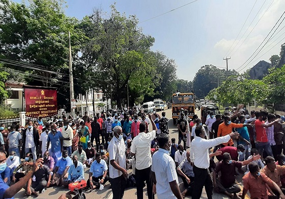 යාපනය දිස්ත්රීක් ධීවර සංගම් සමිති කාර්යාලයේ සිට විරෝධතාකරුවන් විසින් විරෝධතා පාගමන ආරම්භ කොට යාපනය දිස්ත්රික් ලේකම් කාර්යාලය දක්වා ගමන් කරමින් දිස්ත්රීක්ලේකම් කාර්යාලය ඉදිරිපිටදී යාපනය මහනුවර ඒ න9 ප්රධාන මාර්ගය අවහිර කොට මාර්ගයේ හිඳ ගනිමින් විරෝධතාවයේ නිරත වූහ.