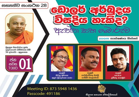 අද(01) දින සවස 7.30ට ZOOM තාක්ෂණය ඔස්සේ පැවැත්වෙන සභ්යයත්ව සංකථන 28 වන සාකච්ඡාව ” ඩොලර් අර්බුදය විසඳිය හැකිද? ඇත්ත සහ බොරුව ” යන මාතෘකාව ඔස්සේ පැවැත්වීමට කටයුතු යොදා ඇති බව පනස්හයේ දරුවෝ සංවිධානයේ අනුශාසක, කැළණිය විශ්ව විද්යාලයේ සංස්කෘත අධ්යයන අංශයේ අංශාධිපති මහචාර්ය පුජ්යය ඉඳුරාගාරේ ධම්මරතන හිමියෝ ලංකා ලීඩ් වෙබ් අඩවිය වෙත අදහස් දක්වමින් පවසා සිටියහ.