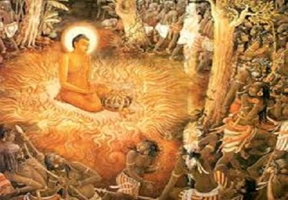 බුදුරජානන් වහන්සේ මතු ලක්දිව බුදුසසුන සුරක්ෂිත වන බව දැන යකුන් විසින් පිරුණු ලක්දිව යකුන් බැහැර කළ යුතු යැයි, දැන වදාළහ.