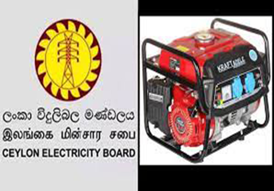 විදුලි අර්බුදය මඟහරවා ගැනීම සඳහා තමන් සතුව ඇති විදුලි උත්පාදන යන්ත්ර භාවිත කරන ලෙස ලංකා විදුලිබල මණ්ඩලය කොළඹ නගරයේ පාරිභෝගිකයින්ගෙන් ඉල්ලා සිටී.