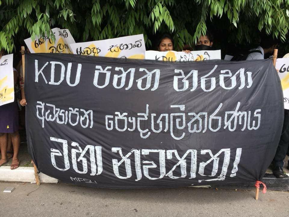 අද (20) දින පාර්ලිමේන්තුවේ විවාදයට ගැනීමට නියමිත ජෝන් කොතලාවල ආරක්ෂක විශ්වවිද්යාලය (විශේෂ විධිවිධාන) පනත් කෙටුම්පනත වෛද්ය සභාවේ නිර්දේශයන්ට යටත්ව සකස් කරන ලෙසත් වෛද්ය සභාවේ නිර්දේශයන්ට පටහැනිව සකස් කරන ලද මෙම වාර්තාව පාර්ලිමේන්තුවේ අනුමත කිරීමෙන් වලකින ලෙසත් ඉල්ලමින් වෛද්ය සිසූහු මේ වනවිට පාර්ලිමේන්තුව අසළ විරෝධතාවයක නිරත වෙති.