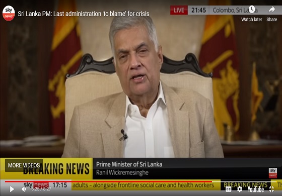 විදෙස් මාධ්යයක් වන “ස්කයි නිව්ස්” වෙබ් අඩවිය සමඟ පැවැති ප්රවෘත්ති සාකච්ඡාවකට එක් වෙමින් අග්රාමාත්යය රනිල් වික්රමසිංහ මහතා ශ්රී ලංකාව බංකොලොත් බවට පත්වී ඇති බවත් ශ්රී ලංකාවට මින් පෙර කිසි දිනෙක මෙවැනි බංකොලොත් තත්වයකට පැමිණ නැති බවත් අනාවරණය කළේය.