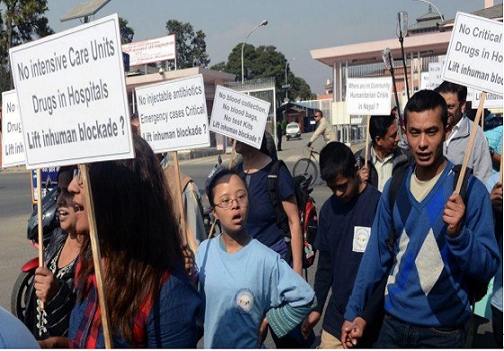 The Guardian වෙබ් අඩවිය සඳහන් කරන ආකාරයට, නව ජාතික ආණ්ඩුක්රම ව්යවස්ථාවට විරුද්ධ කණ්ඩායම් විසින්, ඉන්දියාව සමඟ ඇති දේශසීමා මුරපොලවල් අවහිර කිරීම හේතුවෙන් නේපාලය මානුෂීය අර්බුදයකට මුහුණ දී සිටින බව එරට නියෝජ්ය අගමැති කමල් තාපා පවසයි. බදාදා ජිනීවාහි එක්සත් ජාතීන් අමතමින් තාපා අනතුරු ඇඟවූයේ අවහිරය ඉවත් නොකළහොත් නේපාලයේ දරුවන්ගේ අනාගතය අනතුරේ වැටෙන බවයි. තාපා පැවසුවේ “සමස්ත ජනගහනයේ ජීවිත සහ ජීවනෝපායන්ට මෙම තත්ත්වය අහිතකර ලෙස බලපා ඇත. “පාසල් සහ රෝහල්වලට වත්මන් තත්වයන්ගේ බර විඳීමට සිදු වී ඇති අතර, මිලියන ගණනක් ළමුන්, වැඩිහිටියන් සහ රෝගී පුද්ගලයින් වැඩි අවදානම් වලට නිරාවරණය කර ඇත.” නේපාලයේ, නව ව්යවස්ථාව සම්බන්ධව ආරම්භ වූ වැඩ වර්ජනවලින් ඩොලර් බිලියන 1 ක බලපෑම ‘භූමිකම්පාවලට වඩා දරුණුයි’ මේ වන විට දෙවන මාසයට පැමිණ ඇති මෙම අවහිරය හේතුවෙන් ඉන්දියාවෙන් රටට පැමිණෙන ඉන්ධන ප්රමාණය සහ අත්යවශ්ය සැපයුම් ප්රමාණය දැඩි ලෙස සීමා කර ඇත. නේපාලය සිය ආනයනවලින් සැලකිය යුතු ප්රතිශතයක් සඳහා ඉන්දියාව මත දැඩි ලෙස රඳා පවතී. කත්මණ්ඩු හි, පෙට්රල් සඳහා සැතපුම් ගණනක් දිග පෝලිම් අගනුවර වීදි හරහා ඇරඹෙන අතර, බොහෝ නිවැසියන් දැන් ආහාර පිසීම සඳහා දර භාවිතා කරමින් සිටින්නේ පිසින ගෑස් අවසන් වී ඇති බැවිනි. නේපාල දේශපාලකයන්ට විශාල දෝෂාරෝපණ එල්ල වී තිබේ. දින පහක් පෙට්රල් සඳහා පෝලිමේ සිටි කුලී රථ රියදුරෙකු වන මිත්තේ තාපා මාගර් පැවසුවේ “ඒක ආණ්ඩුවේ වරදක්. එය එදිනෙදා ජීවිතයට බෙහෙවින් බලපා තිබෙනවා. අපට වැඩ කිරීමට නොහැකි වී තිබෙනවා. අපි වැඩ කළ යුතු සති ගණන් අපි මෙහි පෝලිම්වල සිටින්නේ. කිසි කෙනෙක් අපට ඇහුම්කන් දෙන්නේ නැහැ. ”