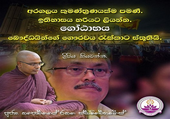 දූරදර්ශී පාලකයෙකු වූ ගෝඨාභය රාජපක්ෂ විසින්, මහා සංඝරත්නය රැක් ගනිමින්, යුධ සෙන්පතියන් වූ සියළුම ජෙනරාල් වරුන් රැක ගනිමින්, තමන් කුමණ්ත්‍රණයකට හසුව සිටිනා බව නොදන්නා තරුණ පිරිසේ ජීවිතද රැක ගනිමින්, සාර්ථකව පාලනය කර දෙන ලදී. ඔහුට බලය අත් හැරීමට සිදු වූවත්, ඔහු බෞද්ධයින්ව සැබෑවටම සමඟිව තබන ලදී.