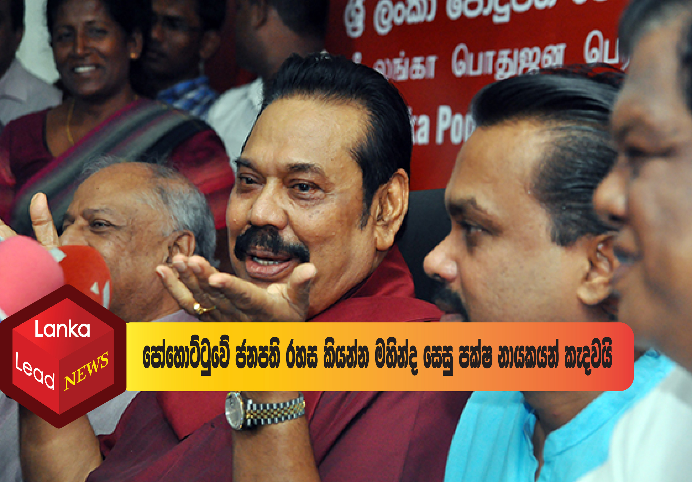 ඉකුත් සතියේ හිටපු ජනාධිපති මහින්ද රාජපක්ෂ මහතාගේ නිල නිවසේදී හමු වී ඇති ගෝඨාභය රාජපක්ෂ චමල් රාජපක්ෂ හා බැසිල් රාජපක්ෂ යන සහෝදරයන් එක්ව මීළඟ ජනාධිපතිවරණයට ඉදිරිපත් කළ යුතු රාජපක්ෂ ගැන තීරණයක් ගෙන ඇතත් අවස්ථාව උදාවන තෙක් එය රහසක් ලෙස තබා ගැනීමට කථිකා කර ගෙන ඇති බවත් එම ආරංචි මාර්ග සඳහන් කරයි.