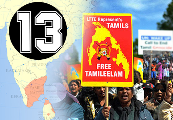 දෙමළ ජාතික සන්ධානය ඇතුළු ඩයස්පෝරාව විසින් මෙහෙයවනු ලබන දේශීය සහ විදේශීය විවිධ ප්රකාශකයින්ට අනුව දෙමළ ජනතාවගේ අපේක්ෂා ලෙස හඳුන්වන එහෙත් බෙදුම්වාදීන්ගේ අපේක්ෂා ඉටුකිරීම හෝ ඊනියා ජනවාර්ගික ගැටළුව විසඳීම සඳහා ඔවුන් විසින් ඉදිරිපත් කරන එකම විසඳුම 13 වැනි සංශෝධනය සම්පූර්ණයෙන් බලාත්මක කිරීම මගින් ෆෙඩරල් රාජ්යයක් නිර්මාණය කිරීමය. එය දෙමළ ඊළාම් මාර්ග සිතියමේ ප්රධාන සැතපුම් කණුවකි. නමුත් 13 වැනි ව්යවස්ථා සංශෝධනය සම්මත් කරන අවස්ථාවේදී ඊට එරෙහිව පැවති ප්රබල මහජන විරෝධය නිසා එම සංශෝධනය සම්පූර්ණයෙන්ම බලාත්මක කිරීම වැළැක්වීම සඳහා ව්යවස්ථාමය බාධක කිහිපයක් පැනවීමට ජේ.ආර්. ජයවර්ධන ජනාධිපතිවරයාට සිදු වූ බව පැහැදිලි කරුණකි. අද වනතුරු පොලිස් ප්රඥප්තිය, ඉඩම් ප්රඥප්තිය සහ මහ ඇමති අරමුදල් ප්රඥප්තිය ආදිය සම්මත කරමින් බෙදුම්වාදී මාර්ග සිතියම ඔස්සේ ඉදිරියට යාමට නොහැකි වී ඇත්තේ එම ව්යවස්ථාමය බාධක නිසා ය.