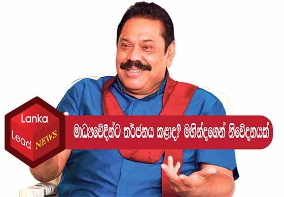 නිව්යෝක් ටයිම්ස් පුවත්පතේ පලකොට තිබූ ලිපියට හිටපු ජනාධිපති මහින්ද රාජපක්ෂ මහතා පසුගිය ඉරිදා මාධ්ය නිවේදනයක් මාර්ගයෙන් ප්රතිචාර දැක්වූ පසු තම විමර්ශනය සිදුකිරීමට උදවු දුන් ශ්රී ලාංකික මාධ්යෙව්දීන් දෙදෙනෙකුට ඒකාබද්ධ විපක්ෂයේ මන්ත්රීවරුන් තර්ජනය කළ බව පවසමින් නැවත නිව්යෝක් ටයිම්ස් පුවත්පතේ වාර්තාවක් පළවීම සම්බන්ධයෙන් හිටපු ජනාධිපති මහින්ද රාජපක්ෂ මහතා නිවේදනයක් නිකුත් කර ඇත. එම සම්පූර්ණ නිවේදනය පහත පළවේ.