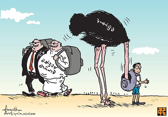 අපේ රටේ ජනතා පරමාධිපත්යය කොල්ලකන්නෙත් මේ විදිහට ම තමයි. අපි හැමෝ ම දන්න හින්දා ඒ ගැන අමුතුවෙන් විස්තර කියන්න ඕන නෑ. දැන් කාලයක් තිස්සේ රඟ දැක්වෙන “බලය බෙදීම” නාටකයත් මේ මංකොල්ලයට ම සම්බන්ධ එකක්. 1987 දී පළාත් සභා ඇති කළා කියලා විසැඳිච්ච ප්රශ්නයක් තියෙනවා ද? ඒ වැඩේ හරහා සිද්දවුණේ මැද මට්ටමේ ප්රභූ පිරිසගේ බල ව්යාපෘතියට තොටිල්ලක් නිර්මාණය කිරීම විතරයි. ඊ ළඟ ජනාධිපතිවරණය ඉලක්ක කරගෙන නැවත වතාවක් මේ නාට්යය රඟ දැක්වීම ආරම්භ කරලා තියෙන බවකුත් පේනවා. ජනතාවගේ විවිධ පාර්ශ්ව නියෝජනය කරනවා කියලා උඩ පනින, බෙරිහන් දෙන සමහර ප්රභූ නායකයෝ කරන්නෙත් මේ සෙල්ලම සාධාරණීකරණය කරන එකයි. තමන්ගේ පැවැත්ම තීරණය වෙන්නෙත් මේ සෙල්ලම ඇතුළේ කියලා ඒ අය දන්නවා.