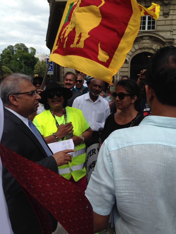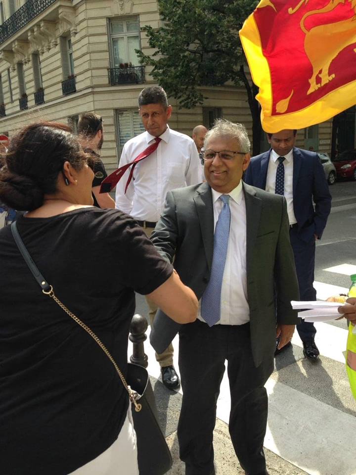 එහිදී විරෝධතාකරුවන් වෙත පැමිණි ප්රංශයේ ශ්රී ලංකා තානාපතිතුමන් තමන්ද මෙම විරෝධතාවට සහය පළ කරන බව පැවසීය. කිසිදු ශ්රී ලාංකිකයකු බෙදුම්වාදී ත්රස්තවාදය යළි හිස ඔසවනවාට විරුද්ධ බවත් ඊට කිසිදු ලෙසකින් සහාය නොදක්වන බවත් ඒ මහතා එහිදී පෙන්වා දුන්නේය.