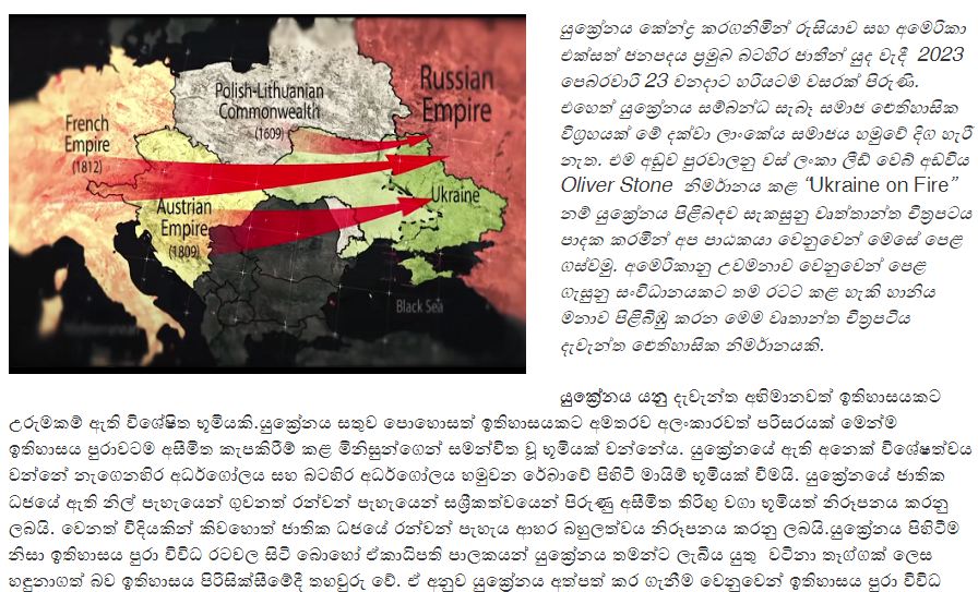 යුක්රේන යුද්ධය හා සම්බන්ධ සැබෑ සමාජ ඓතිහාසික විග්රහයක් මේ දක්වා ලාංකේය සමාජය හමුවේ දිග හැරී නොමැති පසුබිමක් තුළ ඒ පිළිබඳව සවිස්තරාත්මක හෙළිදරව්වක් ‘ලංකා ලීඩ්‘ තුළින් පාඨකයා හමුවට ගෙන එන්නෙමු.