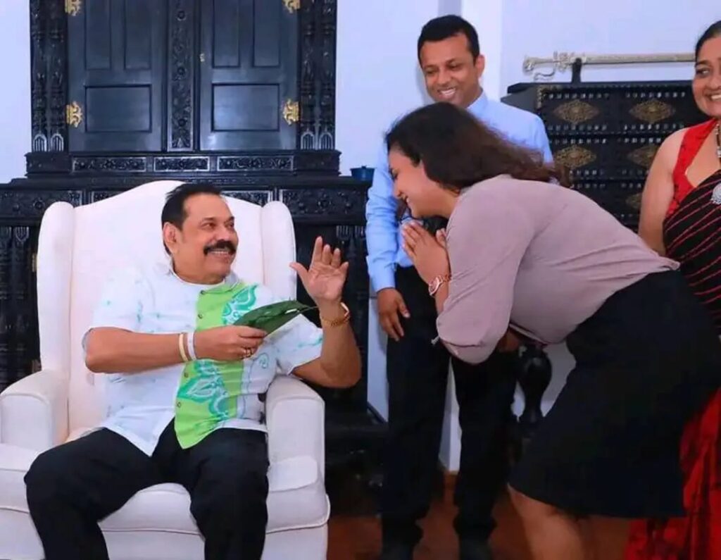 අරගලයේ මුල්පෙළ සාමාජිකාවක වන රංගන ශිල්පිනි දමිතා අබේරත්න අලුත් අවුරුද්දට හිටපු ජනාධිපති මහින්ද රාජපක්ෂ මහතා බැහැදැකීමට ගිය ඡායාරූපයක් සමාජ මාධ්ය තුළ සංසරණය වේ.