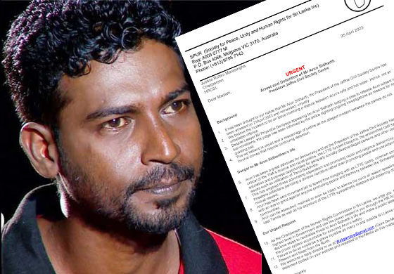 මේ වන විටත් අත්අඩංගුවේ පසුවන යාපනය සිවිල් සංවිධාන කේන්ද්රයේ සභාපති අරුන් සිද්ථාර්ථ් මහතාගේ ආරක්ෂාව වෙනුවෙන් හා ඔහුට සාධාරනයක් ඉටුකිරීම වෙනුවෙන් ඔස්ට්රේලියාවේ ‘ස්පර්‘(SPUR) සංවිධානය බිම් මට්ටමේ කටයුතු කීපයක් කර තිබේ.