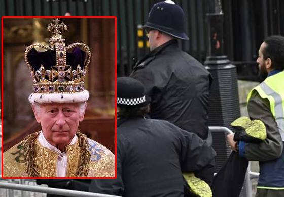 III චාල්ස් රජගේ රාජාභිෂේකය ඊයේ (06) පැවති අතර එයට විරෝධය පළකරමින් රාජාණ්ඩුවට විරෝධය දක්වමින් විරෝධතාකරුවන් ට්රැෆගල් චතුරස්රයේ මෙලෙස විරෝධතාවල නිරත වී තිබේ.