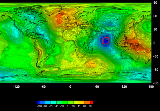 පෘථිවියේ ගුරුත්වාකර්ෂණය අඩුම ස්ථානය හමුවන්නේ ශ්රී ලංකාවේ දකුණු කලාපයේ බව අමෙරිකාවේ නාසා ආයතනය පවසයි.