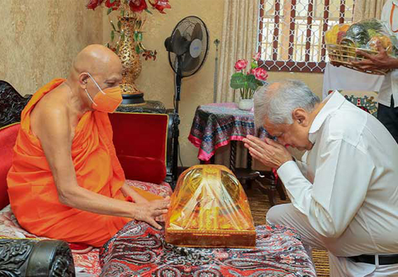 ජනාධිපති රනිල් වික්රමසිංහ මහතා මල්වතු සහ අස්ගිරි මහානායක ස්වාමීන්වහන්සේලා බැහැදැක තිබේ.