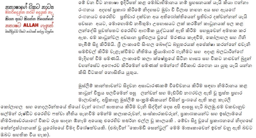 ප්රහසනයක් යැයි කියා ගනිමින් අදහස් ප්රකාශ කිරීමේ නිදහසට මුවා වී විලාප නඟන පුද්ගලයන් සහ මෝඩාභිමානයේ ජවනිකා රඟදැක්වූ නතාෂා නම් කාන්තාවට එරෙහිව ප්රතිචාර දක්වන පුදගලයන් මෙන්ම ඇයට විරුද්ධව අතිශෝක්තියෙන් ප්රතිචාර දක්වන්නන් යැයි පවසන පිරිස්වලට ඔවුන් නොදන්නා හෝ දැනගෙන අමතක කර දැමූ ආගමික යුද්ධයක් පිළිබඳ තොරතුරු මෙසේ පළ කරන්නෙමු.