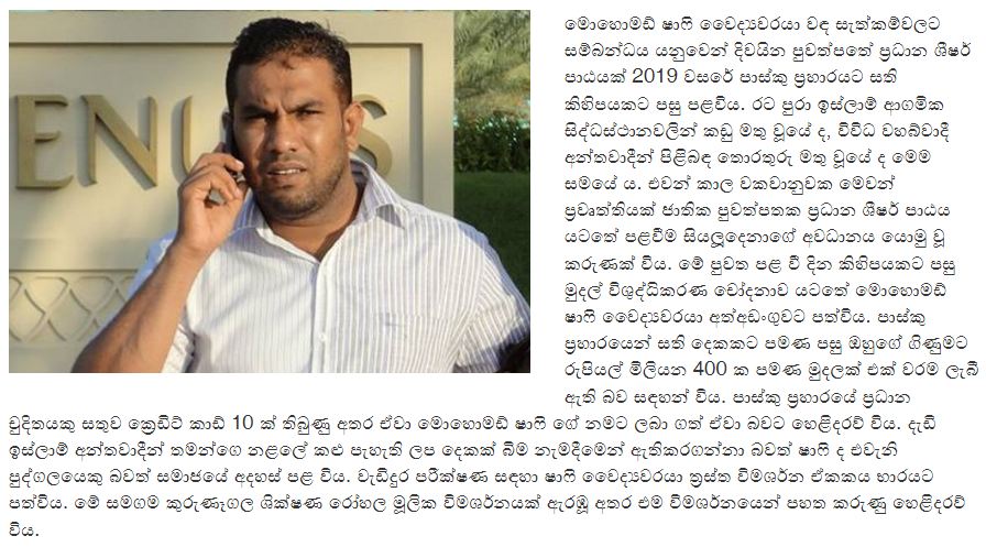 කෙසේ වෙතත් වෛද්ය ෂාෆිගේ මෙම ක්රියාව සහ එය යට ගැසීම සඳහා එල්ල වූ වහබ්වාදීන්ගේ බලපෑම් පිළිබදවත්, එම බලපෑම්වලට යටත්වූ දේශපාලකයන් හා නිලධාරීන් පිළිබඳවත් මෙන්ම මෙම සිදුවීම පිළිබඳව මුල සිට අග දක්වාම කරුණු සඳහන් සවිස්තරාත්මක ලිපියක් අප වෙත ලැබී තිබේ.