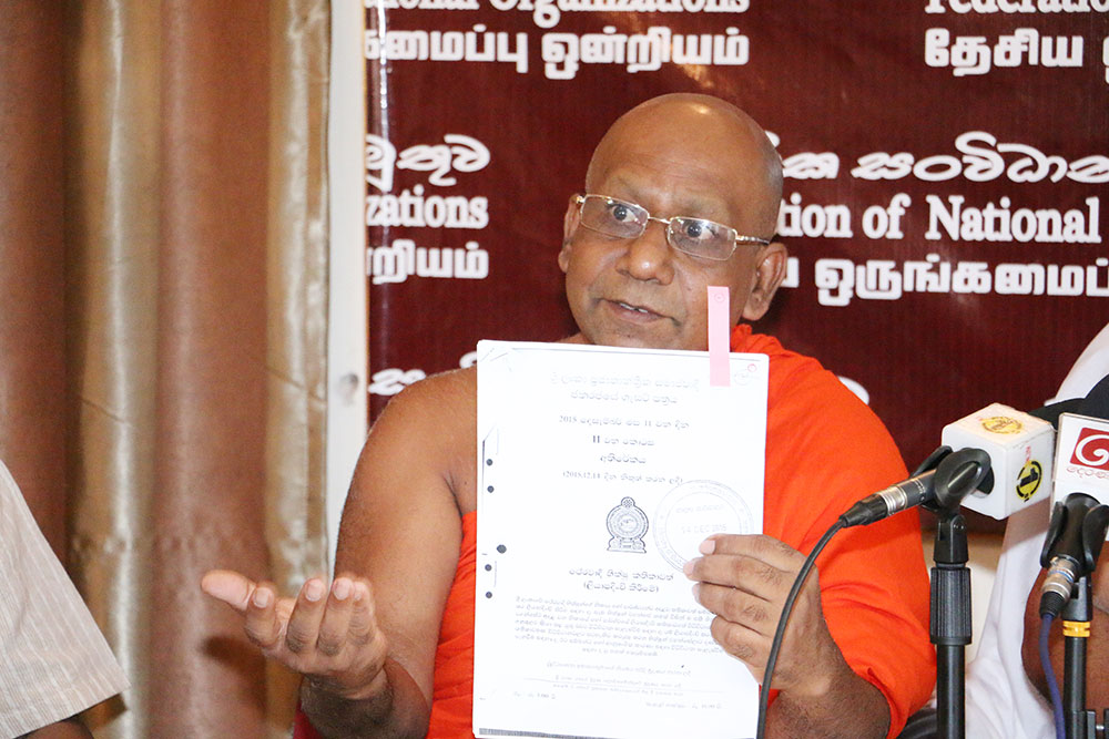 අද (19) පැවති ජාතික සංවිධාන එකමුතුවේ මාධ්ය හමුවකට එක්වෙමින් උන්වහන්සේ මේ බව පැවසූහ.