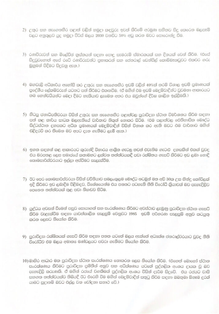 ජනාධිපතිවරණයේ දී සුළු ජාතික ඡන්ද ඉලක්ක කරගනිමින් ජනාධිපතිවරයා කටයුතු කරන ආකාරයක් පෙනී යන බවද එම ලිපියෙන් චෝදනා නගා තිබේ.