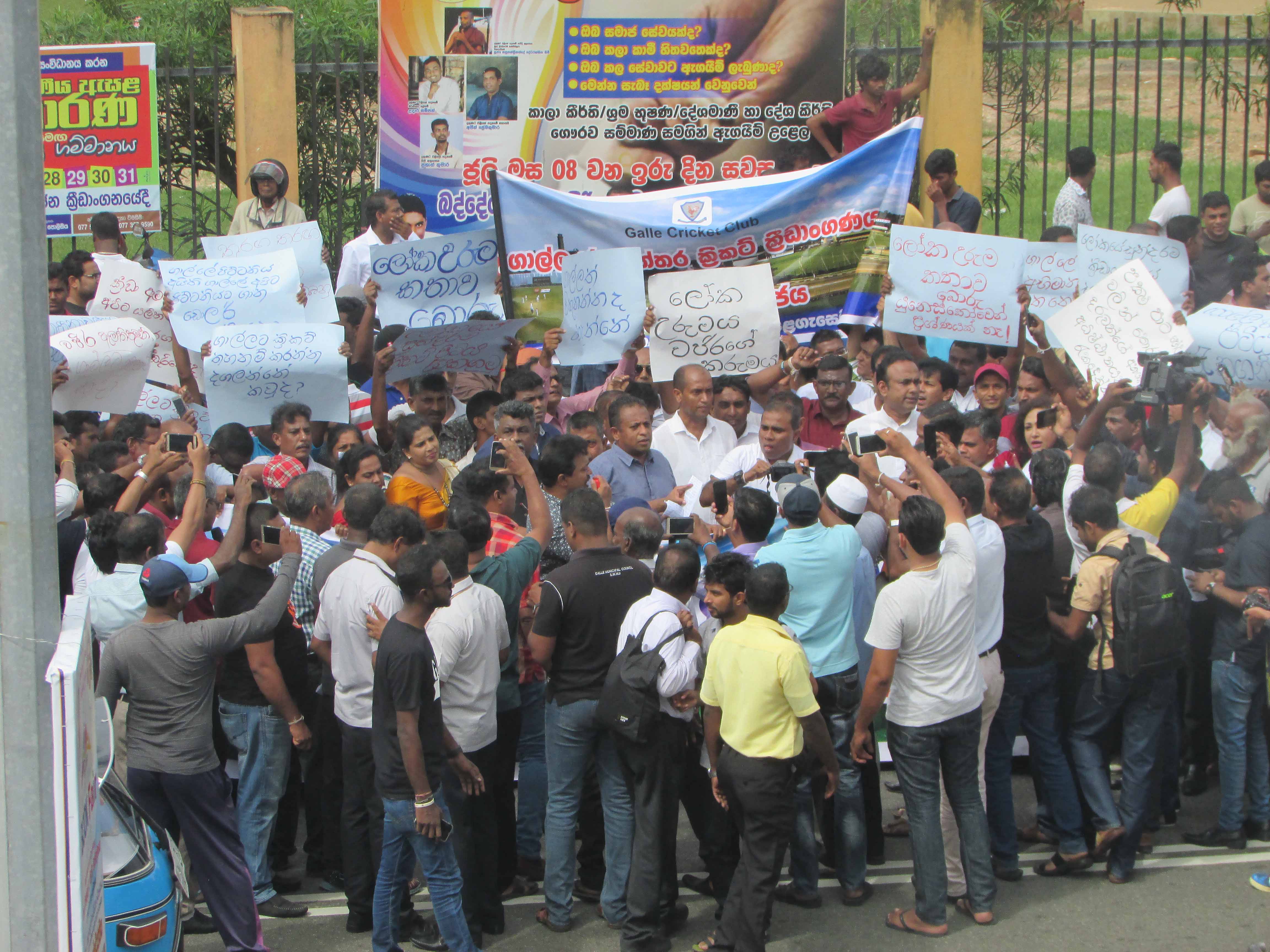 පසුව විරෝධතා කරුවන් ගාල්ල මාතර ප්රධාන මාර්ගය ගාල්ල බස් නැවතුම්පොළ ඉදිරිපිටින් අවහිර කරමින් විරෝධතාවයේ නිරතව සිටියහ. ක්රිකට් ක්රිඩාංගනයට අත් නොතබන ලෙස ඉල්ලමින් මොවුන් විරෝධතාවයේ නිරතව සිටි අතර විරෝධතා කරුවන් ඇමති දොස්තර් රමේෂ් පතිරණ මහතා මේසේ කිවේය.