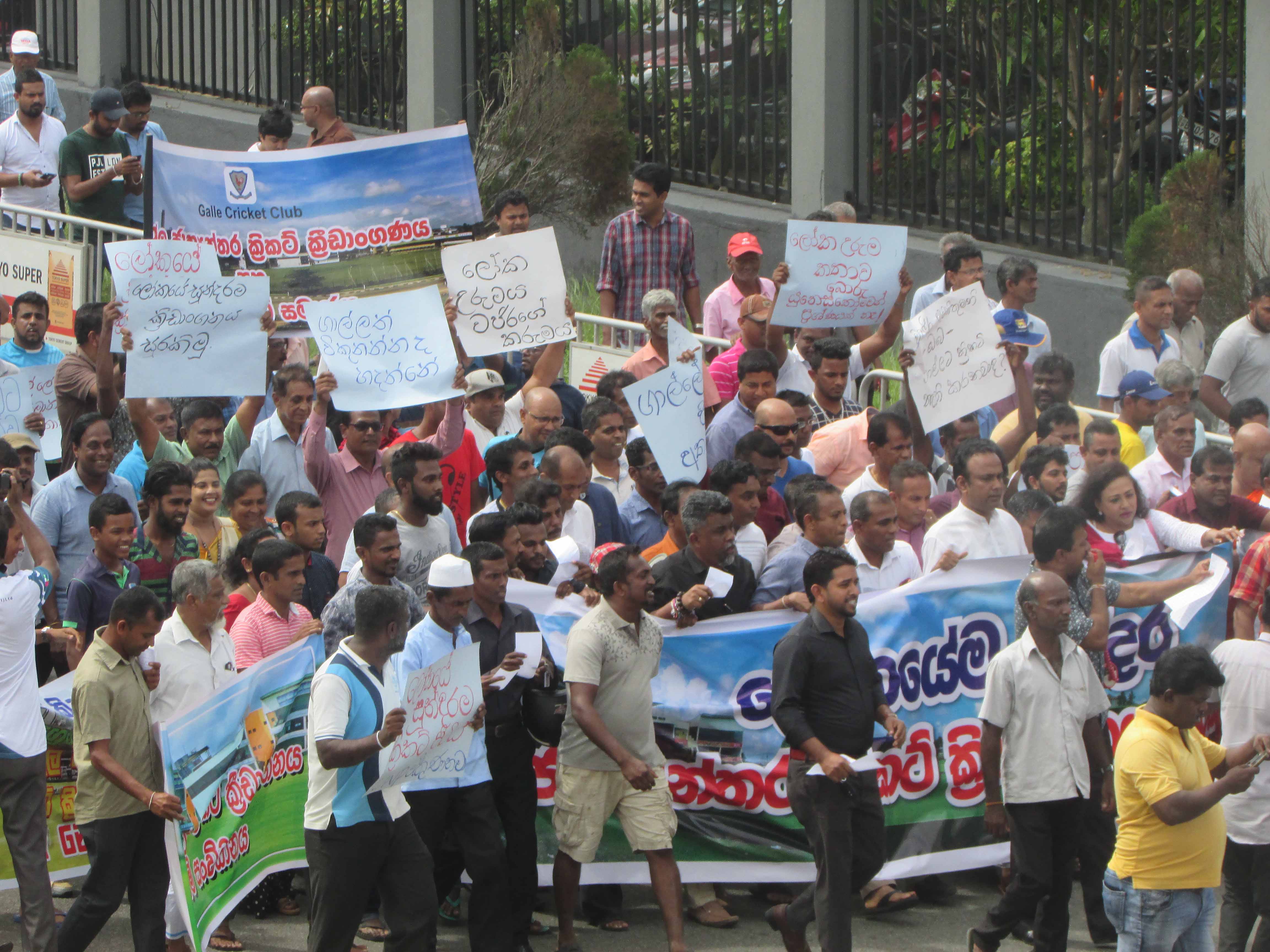 සාගල රත්නායක ඇමතිවරයා කියන්නේ බොරු මෙම ක්රිඩාංගනය ඉවත්කරණ බවත් එහි සේවකයින්ට ඉවත්වන ලෙසත් දන්වා තියෙනවා. අපි රජයෙන් ඉලන්නේ මෙම ක්රිඩාංගනයට අත තියන්න එපා කියාලා රමේෂ් පතිරණ මන්ත්රිවරයා කිවේය. පසුව විරෝධතා කරුවන් සටන්පාඨ කියමින් පෙලපාලියකින් ගාල්ල නගරයේ සංචාරය කරමින් විරෝධතාවයේ නිරතවුහ.