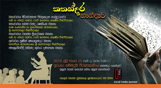 කොළඹ සෞන්දර්ය කලා විශ්වවිද්යාලයේ සංගීතපීඨයේ සංගීතවිද්යා අධ්යයනාංශයේ අධ්යයනාංශ ප්රධාන ජ්ය්ෂ්ඨ කථිකාචාර්ය ඉරංගා සමින්දනී වීරක්කොඩි විසින් විරචිත “කරත්ත කවි කතන්දරේ” සහ “එකැස්බෙරේ කතන්දරය” ළමා කෘති ද්විත්වය ජනගත කිරීම නිමිත්තෙන් පවත්වන “කතන්දර හැන්දෑව”අත්දැකීම විඳගන්න ඔබත් පැමිණෙන්න.
