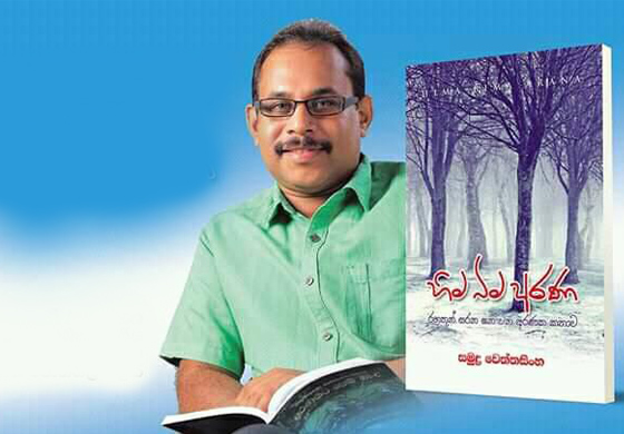 මේ කෘතියට පාදක වෙන්නේ මහා ඝන වනාන්තරයක බවුන් වඩන භික්ෂූන් වහන්සේලා පිරිසක් පිළිබඳවයි. වනාන්තරයට බුදුන් වහන්සේ වැඩම කරනවා. ඒ අය එක්ක කතාබහ කරන සැටි, ධර්මය උගන්වන සැටි, භාවනා ක්රම පුරුදු කරන සැටි මේ කෘතිය තුළින් නිරූපණය වෙනවා. මා මේ තොරතුරු සොයා ගත්තේ ථෙරගාථවත්, ථෙර අට්ඨකංතාවත්, සූත්ර පිටකයත් විනය පිටකයත් එකසේම අධ්යයනය කිරීමෙන් ථෙරගාථා පරිශීලනයෙන්. මීට පෙර අගනා කෘති කීපයක්ම පළවී තිබෙනවා. මාර්ටින් වික්රමසිංහයන්ගේ ‘තේරි ගී‘ කෘතියත්, පරාක්රම කොඩිතුවක්කු කවියාගේ ‘රශ්මි‘ භාව කාව්යයත් ඒ අතරින් ප්රධානයි. ඒත් මේ හිම බිම අරණ කෘතිය හුදෙක් ථෙර ගාථාවලට සීමා වන්නේ නෑ. ථෙරගාථා අට්ඨකතාව ඇසුරිනුත් මහ රහතන් වහන්සේලාගේ චරිත අධ්යයනය කර තිබෙනවා. ඊට ඉවහල් වූයේ භදන්තාචාර්ය ධම්මපාල මහා තෙරපාණන් සම්පාදනය කළ ථෙරගාථා අට්ඨ කතාවයි. ථෙරගාථා අට්ඨකතාව පාදක කරගෙන මෙතෙක් කිසිඳු සාහිත්ය නිර්මාණයක් බිහි වී නැහැ. මෙහි බොහෝ දුර්ලභ තොරතුරු උකහා ගත්තේ ත්රිපිටකයත් අටුවාවත් ඇසුරිනුයි. මූලාශ්ර පරිශීලනය කරන විට ඒ අතීත යුගය අපේ මනසෙහි මැවෙනවා. ඒ මනසින් මැවෙන දේ තමයි මේ කෘතිය ලිවීමේදී මට බොහෝ ඉවහල් වුණේ.