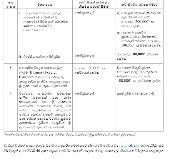 ශ්රී ලංකාවෙන් බැහැරට විදේශ විනිමය ප්රේෂණය කිරීම් මත පනවා තිබූ යම් සීමා කිරීම් සහ අත්හිටුවීම් ලිහිල් කරමින් ශ්රී ලංකා මහ බැංකුව විසින් නව නියෝග කිහිපයක් නිකුත් කර තිබේ.