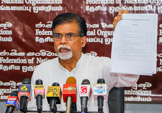 ව්යවස්ථාව සංශෝධනය කිරීමක් හරහා 13 වැනි සංශෝධනය පූර්ණ වශයෙන් බලත්මක කිරීමට ජනාධිපතිවරයා හා උතුරේ දෙමළ දේශපාලන පක්ෂ අතර ඇති වූ එකඟතාවයන් ඇතුළත් ලියවිල්ලක් වෛද්ය වසන්ත බණ්ඩාර මහතා අද( 27) ජාතික සංවිධාන එකමුතුව මගින් පැවැත්වූ මාධ්ය හමුවක දී අනාවරණය කළේය.