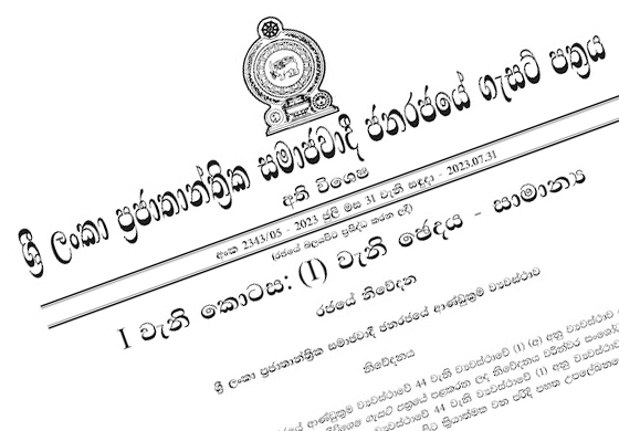 ජනාධිපති රනිල් වික්රමසිංහ මහතා විසින් අති විශේෂ ගැසට් නිවේදනයක් නිකුත් කර තිබේ.