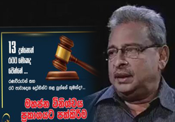 ‘13 දුන්නොත් රටට මොකද වෙන්නේ?‘ මහජන විනිශ්චය ප්රකාශයට පත්කිරීම අගෝ: 10 දා සවස 3.30ට තුන්මුල්ල සම්බුද්ධත්ව ජයන්ති මන්දිරයේ දී පැවැත්වීමට කටයුතු යොදා තිබේ.