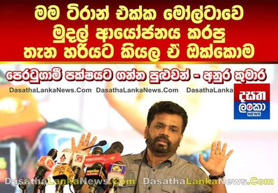 ඒ,වගේම අනුර දිසානායක කියන පරිදි එහෙම මුදලක්, තිබෙන බව ඔප්පු කලොත් ඒ මුදල් පෙරටුගාමී,පක්ෂයට දෙනවා,කියලා මීට පෙර මහින්දට ඩොලර්, බිලියන 18 ක් රටෙන් එළියේ,තියනවා කියලා ජවිපය කියපු ඒවට මහින්ද රාජපක්ෂ එහෙම මුදලක් තමන්ට තියනවා කියලා ඔප්පු කරන කෙනාට ඒ මුදල් මම දෙනවා කීව එකත් නිවරදියි කියලා ජවිපයට පිළිගන්න වෙනවා..