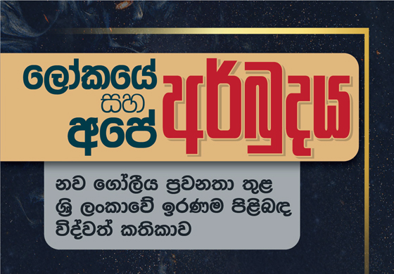 ලෝකයේ අර්බූදය සහ අපේ අර්බූදය නම් මාතෘකාව යටතේ නව ගෝලීය ප්රවනතා තුළ ශ්රී ලංකාවේ ඉරණම පිළිබඳව කෙරෙන විද්වත් සාකච්ඡාවක් අගෝස්තු මස 24 වනදා සවස 03:30ට කොළඹ 7 නිදහස් මාවතේ පිහිටි පුස්තකාල සහ ප්රලේඛන සේවා ශ්රවනාගාරයේදී පැවැත්වීමට කටයුතු යොදා ඇත.