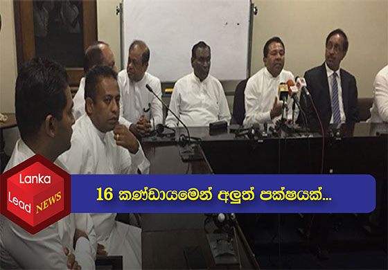 ශ්රී ලංකා නිදහස් පක්ෂයෙන් ඉවත්ව ස්වාධීන වූ 16 කණ්ඩායම නව පක්ෂයක් පිහිටුවීමට තීරණය කර ඇති බව එහි ජ්යෙෂ්ඨ සාමාජිකයෙක් ජාතික පුවත්පතක් වෙත අනාවරණය කර තිබේ.