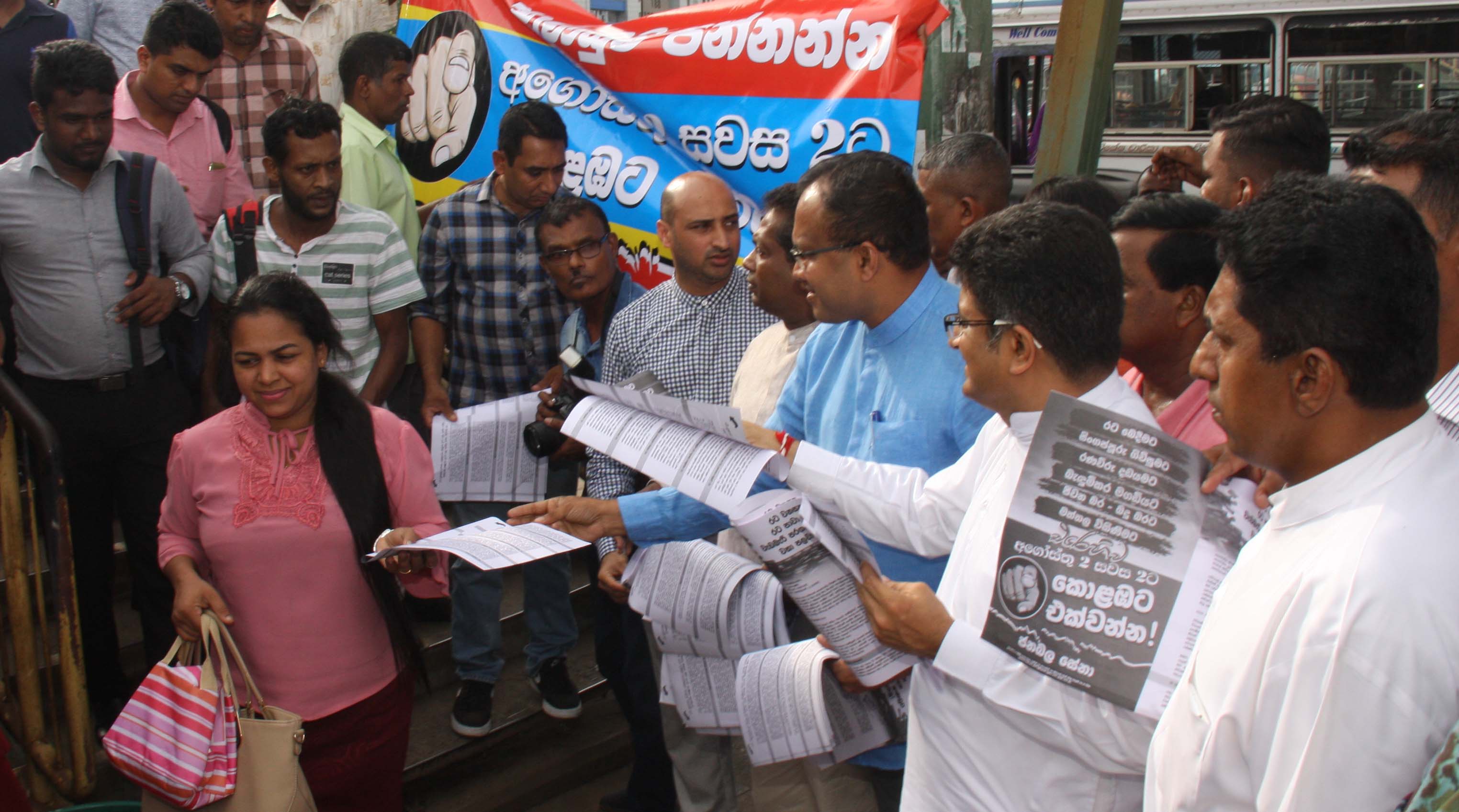 ආණ්ඩුවට විරෝධය පළ කිරීම සඳහා ඒකාබද්ධ විපක්ෂය විසින් කොළඹ ලිප්ටන් වටරවුම හා විහාරමහාදේවී එළිමහන් රංග පීඨය ආශ්රිතව හෙට (02දා) සිදුකරන‘ජනබල සේනා’ විරෝධතා ව්යාපාරය සම්බන්ධව මහජනතාව දැනුම්වත් කිරීමේ වැඩසටහනක් කොටුව දුම්රියපොළ ඉදිරිපිටදී අද (01දා) සවස සංවිධානය කර තිබුණි.