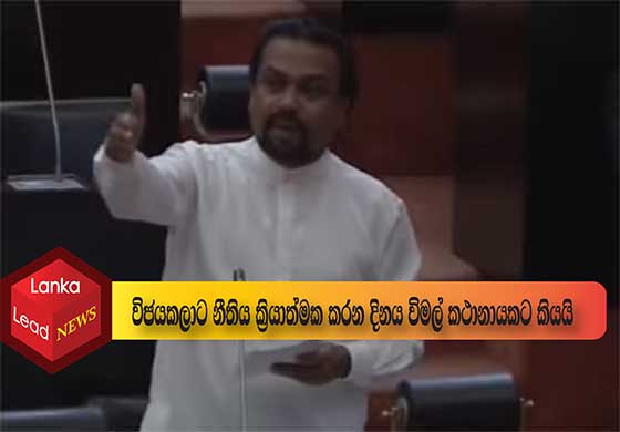 ඔබතුමා විජයකලා මන්ත්රීතුමියට නීතිය ක්රියාත්මක කරනකොට පාර්ලිමේන්තුව විසුරවලා තියෙයිවිමල් කතානායකට කියයි