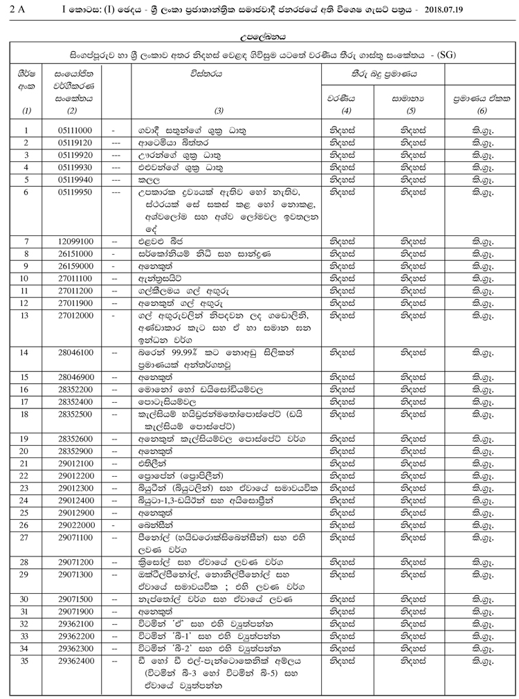 සිංගප්පූරුව හා ශ්රී ලංකාව අතර නිදහස් වෙළෙඳ ගිවිසුම යටතේ තීරු බදු නිදහස් කෙරෙන භාණ්ඩ 182 ක තොරතුරු ඇතුළත් අතිවිශේෂ ගැසට් පත්රය මේ වන විට ප්රකාශයට පත් කර ඇත.